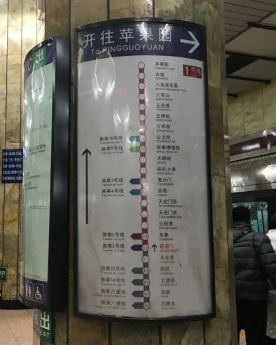 Para llegar hasta esa estación, debes ir hasta la estación de Jianguomen, y cambiar a la línea 1.